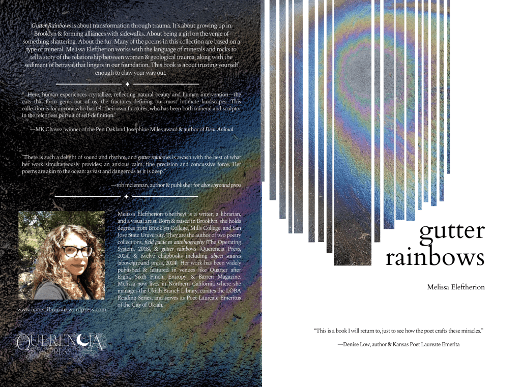 gutter rainbows by Melissa Eleftherion, Querencia Press, 2024, 85 pages, $13